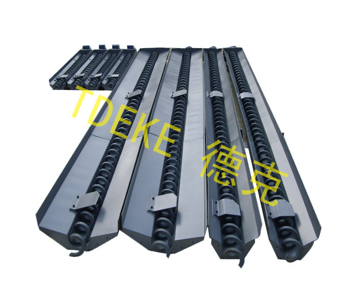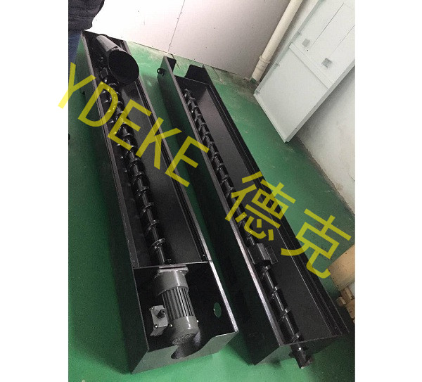 螺旋式排屑機(jī),螺旋式排屑機(jī)分有芯和無芯兩種,它一般與其他類型的排屑機(jī)配合,將從防護(hù)罩或工作臺收集來的鐵屑輸送到排屑機(jī)進(jìn)屑口,再由排屑機(jī)輸送到收集車上。螺旋式排屑機(jī)也可以安裝喇叭,直接將廢屑從喇叭口排到機(jī)集屑車上。